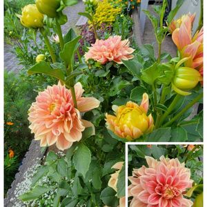 🏷️土曜日はお空の発表会 🏷️咲いたよ 参加します(*˘︶˘*).。.:*♡ 撮影🤳8月30日マイガーデン 朝一雨有り 雲の隙間から太陽☀️ 1️⃣2️⃣3️⃣ダリア NAMAHAGE MASARU 1輪ですが咲き始めました🤍🧡 4️⃣5️⃣ダリア ピンクサファイア🩷 三輪車咲いてますが他は花びらが虫食い😢 📪昨日ポストイン りりーちゃん届きました😍 先ずは大好きなダリアと記念撮影🤳