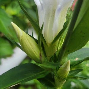🏷️今日のお花 リンドウ 🏷️咲いたよ 参加します(*˘︶˘*).。.:*♡ 昨年お迎えしたいリンドウです 昨年はお花が咲きませんでした😥 今年咲きました🤍 思った咲き方と違うような😰