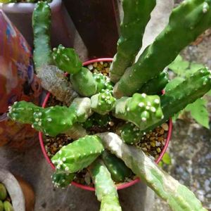 エキノケレウス桃太郎 冬の寒さでフニャリとして ましたが このところ元気\(^o^)/ 管理の悪さからか花🌼を つけたことがありません(◜o◝) 秋に植え替えた方が 良さげな雰囲気(`ω´;;)