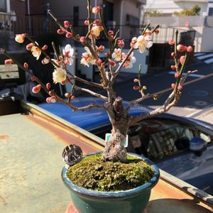 暖かくなってきて開花が始まりました。他の梅盆栽も咲き始め毎日の水やりが楽しみです。