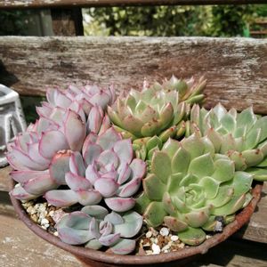 カラッとした風の多肉日和🪴 日差しは夏みたい☀️ 🏷️毎月5日は群生の日 ①冬に梅干しの様だった🪴 無事に復活してくれました✨