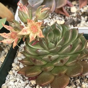 おはようございます。今日は曇っていて涼しく感じますね。 ここ数日の猛暑で大切にしていた大株ラウイが星になってしまいました😭少し培養土を混ぜていたのですが、スリット鉢ではないプラ鉢で、いつだか降った雨が乾かず蒸れてました🫠悲しいですが仕方ない、この夏、これ以上のショックを受けることはないでしょう。大丈夫そうな葉っぱで葉挿しを試みます。 100均産のオリビアが淡いオレンジの花を咲かせていました🧡