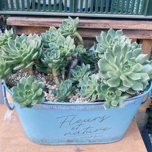 今日はお休みなので、家事もゆっくり🐌💨💨 8時過ぎに3回目の洗濯機を回し、玄関掃除して庭へ出て多肉棚を眺め…汚れてるから棚の掃除😅 あぁ~寄せ植えしようと思って土を入れたリメ缶が👀❗で寄せ植え❤️ この前買ったリエールさんの寄せ植えの土が使ってみたかったの🎶 めっちゃモリモリにしてみました🎵 結局家に入ったら1時17分🤣