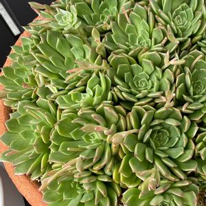 超久しぶりに投稿してみます💦 すっかりご無沙汰し過ぎていて、もう何をどう撮ったら良いのかサッパリわからんようになってます😅 予定していた春作業をほぼずっとばかしてしまったんで夏越しがめちゃくちゃ心配ですが、育ち過ぎる&殖え続ける多肉の水やり&枯葉取り&花芽摘みに追われてます🤭 時間がないので文章短めになりますけど、ぼちぼち再開しようと思います。しばらくは我が家のモリモリ多肉を載せてみます🎶 今日は「オリビア」🌱 両手で抱えるほどの大鉢に植えてるんで、全体を撮ると小さく写って見えにくいんで、半見せ♡ この子は頭からジャブジャブ水やりしてもブロワーしなくてよいほど、水のキレが良いんで楽チン🎶 先日、花芽を全部カットしてます。