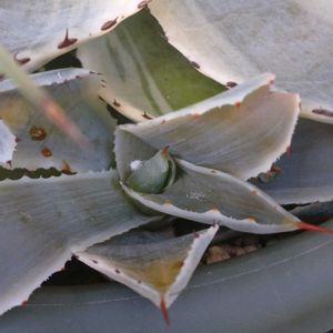 🏷️毎月7日はアガベの日 🏷️勝手に7日は爪エッジ棘の日 参加します😊 避難中のこの子たち😅 今晩から❄マーク🥶 頑張れ〰〰📣 ② 中と下は♀♂反対 同じようにお育てしてるのに 違いがこんな感じ😊 もう一鉢アゴラ×原種エボニーが有るけど😃 どちらも花芽が出てきてる😅