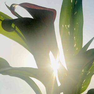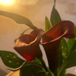 カ ラ ー おはようございます☀️✨✨✨ 朝バージョン❣️ 斑入りの葉が 綺麗です💗 カラーが長い間 美しく咲いてくれて 毎日幸せを貰っています🤗💕💕