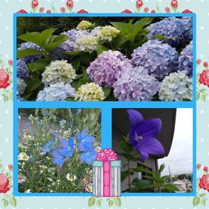 🏷チーム・ブルー Welcomepic に… No.169…YR_g3さん 💙チーム・ブルーへようこそ…💐🎉 (⌒▽⌒)😀✌!!💞🙆🏻 …〜… これから… 皆なと楽しみましょうね~…🙋🏻♀️🤗💞🎶 七変化中の美しい紫陽花…🩵💜🩷🤍💙と…⬆️ 花壇の寄植え…デルフィニウム💠💙🌱↙️ (🚶🏻♀️で…) と… ベランダに…咲いたキキョウの花💜↘️で…… 💐㊗️🎁に… 🏷青い花で梅雨景色 2023 🏷しあわせ運べるように 🏷幸せの青い花 🏷花咲く乙女たち♡ 🏷月曜日は元気色の花