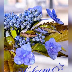 🏷チーム・ブルー💙Welcom pic No.168 ゆりちゃん💐 ようこそチーム・ブルーへ👏😀 これからお仲間宜しくお願い致しますね🎶 💠山紫陽花💠 流れ星☆彡🩵💙 青い花びら(装飾花)が可愛くて この山紫陽花お迎えしました🎵 今年は山紫陽花の 素朴な美しさに惹かれています🥰 この花でお迎えさせて頂きますね(◍•ᴗ•◍)💙 🏷素敵な水曜日 🏷水曜日は水色 🏷水滴の水曜日