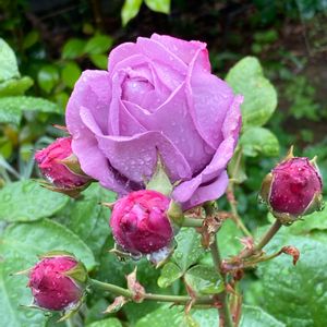 雨にも負けず‼️ 美しいバラ カインダーブルー💙💙💙💙💙🩵🩵💜 No.164 harukazeさん チーム・ブルーにようこそ💙😘 ブルーのお花って多いですね💙✌️ これからも宜しくお願いします💙