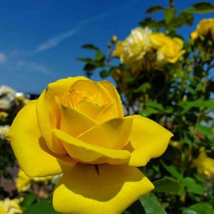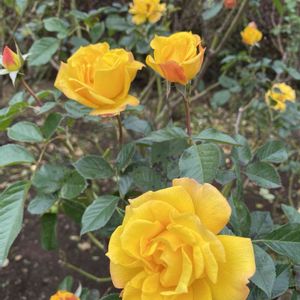 おはようございます😃 神代植物公園までお散歩🚶♀️ バラ園にはたくさんのバラ🌹 「ゴールドマリー」 濃い目の黄色がきれいでした💛