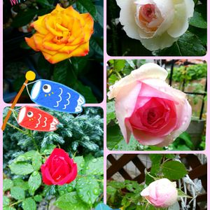 雨降りの子供の日🎏 雨の中で、薔薇が咲き始めました🌹 黄色のゴールドマリー✨ 小さめな薔薇💛 オレンジの縁取りに惹かれました💕 赤いミニバラもたくさん蕾つけてます❤ お上品なピエール・ド・ロンサール💙 同じ木なのに色が違う(*'▽'*) 白が多め、ピンクが濃い、蕾の子はどうかな💞 🏷2021GSでバラ園付けさせて下さい✨