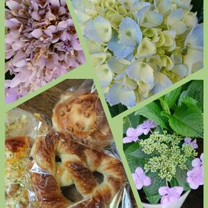 今日行ったパン屋さんの玄関で咲いていました🎵