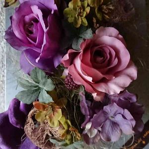 こんなのでもお祝いpic💙💜 😆👌❤️ですか⁉️ 🏷️(祝)青い花マニア3周年 着けちゃいますよ➰➰➰😆 造花をブリキ板に張り付けています😉