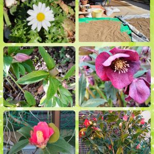 こんにちは☀️二枚目です。主人は、今、米糠が3.油粕が1、又は鶏ふん、有機石灰、EK発酵剤、水500ccを混ぜ合わして、だまをなくします。その後、ビニール袋に入れて密封します。それから、発酵させるために、1ケ月から2ヶ月放置します。その後封を開いて、甘酸っぱい匂いがすれば完成です💓。最終てきに天日干しして乾燥させて終わりです。庭先の花達と、お隣の椿です😊。