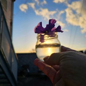 🏷️土曜はお空の発表会 夕陽を瓶に閉じ込めて見ました 青空 4.今日のお花 ピラカンサ 5.ポリキセナとカエル🐸さん