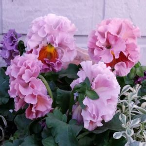 フリル咲きパンジー ローブ・ドゥ・アントワネット ロココ 新年明けましておめでとうございます。 サトウ園芸さんのアントワネット、唇弁辺りが色濃くなって来ました。 私の庭は、ブルー系🩵が多いので、あえて甘いピンク🩷を選んだ一株です。