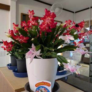 こんばんは🌛 今日は、にゃんにゃん祭りの日🐾🐈⬛って思い出して慌ててアップです。間に合うかな? ①最近お迎えしたシャコバサボテンちゃん😍 赤と白のお花がご一緒してるこの鉢🤣可愛すぎました😀😀 お気づきの方もおみえになると思いますが……お花持ち込みは玄関まで、の我が家😰なのに、なのにこの娘は ま、 さ 、か、 の家の中😀😀戦ったわよ、あたくし😀😀 試合で家を空けるのに外に放り出すの?って😂😂あと数日で単身赴任のボス、私が不在の間、家だけでなく我が家で過ごしてるにゃんもお花ちゃんも数日でも家を守ってもらわないと、って😂こじつけっぽい話でボスをねじ伏せたあたし🤣ボス、陥落でした😁😁 だってだって、ボス不在の間は私が守るんだから💢💢ね🤣🤣 ②③我が家のにゃんにゃん🐾🐈⬛ 長女の鈴ちゃん、次女の百愛ちゃん(もな)♥♥ 鈴は昨年胡蝶蘭をいただいた箱に🐾 値下げ格安ベッドを手に入れたら百愛のお気に入りになりました。2人とも寝るときは私のベッドに来るのにどーしてるだろう……かーちゃん、遅いなぁ~って思ってるかしら?も少し待っていてね😓 ④昨年12月の神戸での日本リーグ第1戦会場のブルボンビーンズドーム ⑤第2戦会場の横浜国際プール 何度来ても不思議なここ。だってプールなんです🏊🏊ホントなら水が入って国際大会が開催されるプール。高飛び込みもあります。なのにテニスの大会が毎年開催される🤯🤯 1月末だったか……バスケの試合もあるようで。ポスター貼ってありました。 床を張り設備を設置し準備される関係者の方々に感謝です。 余談ですが……… お迎えしたシャコバサボテンをお迎えしたお店は灯台真下のあのお店。その時、目にしたショックで残念なことが…… サトウ園芸さんのパンビオ様達が😰なんと半額😓😓😓ええええーまだまだ元気でシャンとしてるのに💢あれもこれもそっちもあっちもなんで半額😣😣😣😣高くお迎えしたからではなく、元気なのに……んで、見てしまったら知らん顔できなかったあたし😓全部は無理だけど2鉢お迎え。まだまだ楽しめる、はず💪って思って戻ってカット✂️✂️最近の暖かさで成長してくれることを祈っています。 あれこれ書きましたが にゃんにゃん祭りに間に合ったかなぁ〜