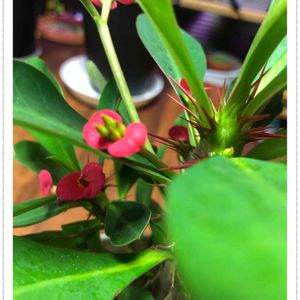 刺なし花キリン🌸 ずっと蕾の開く様子を 観察している刺なし花キリン🌸 苞(花弁みたいに見える部分)の一番長い所で1.5㌢まで開いています。 色もクリーム色から赤に変わっていくと思います😊 大きさももっと大きくなると思います😊 楽しみです💗🌸
