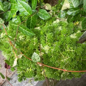 もう10年じゃきかない位うちにいるワイルドストロベリーが、 消えちゃったのが去年。😱 でも、春に隣の鉢から芽を出したのに気づいた。🤩 だけど、当時この鉢は万年草でモリモリ状態。 セダム属の万年草とワイルドストロベリーとでは、やっぱり水やりのテンポが違うので悩んでいた。🤯🥺 GreenSnapで、苺のシュートから株を増やしている人を見て、😳 同じことを企んだ。😋 1本のシュートを4つの小鉢に埋め込んで、 4株増やすために、 ベリー類には暗すぎるよねと思いながら、 なんとか無理やり小鉢を置いた。😂 野菜用の大きいプランターの上に、 何種類もの植物が植わった鉢がギュウ詰。🤣 写真撮影をずっと忘れているうちに、 4鉢全部しっかり根付いたが、🥰 シュートの元株に一番近い小苗が怪しいことに!😫 慌てて記念撮影。 この後、シュートは、鋏を入れる位置を迷いながら、全部切り離した。😆 右下のアベリアは、枝挿しで株に仕立てたもの。 花盛りの時期は写真を撮り忘れた。😂