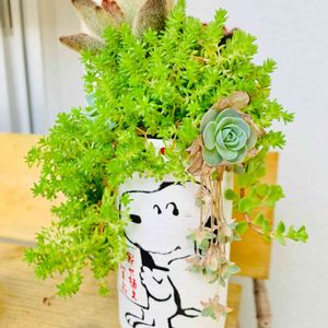 子持ち蓮華しゃんも、ぱっちり お目覚め〜😸 モリムラマンネングサが、 モリモリマンネングサ、、、🙈💨 遠慮して、スヌーピーの顔んとこは、生えてない🤣