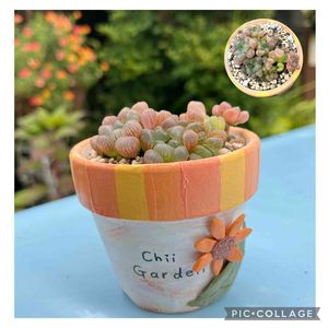 オブツーサ*° (別名:雫石) お買い物ついでに二和園さんでお迎え🙈 水切れでオレンジになってるかな🙃?! この間作ったヒマワリ風リメ鉢に植えてみました- ̗̀ 🌻 ̖́-