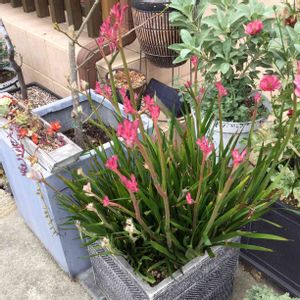 昨年、カンガルーポーの紅白を寄せ植えにしました😃 今年も咲いてくれました🙌🏻 今のところ紅組が優勢です😆