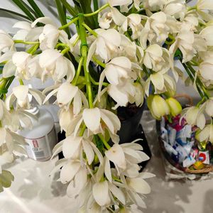 シンビジウム「アイスダンス」✨✨✨ 昨日、不動産屋さんに飾られていた素敵なシンビジウム💖 枝垂れるお花が好きなので、見た瞬間に、「写真撮っていいですか?」って😁 直立のシンビジウムしか見たことがなかったので、こんな珍しいお姿は、初めて🥰 アイスダンスという名前のように、ダンスを踊っているかのように、しなやかな感じもする💖 白は清楚だけど、たくさんのお花が豪華さもあり、とても素敵でした💕💕
