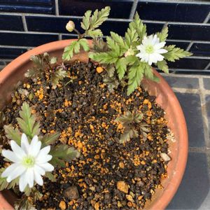 こんにちは😊🌤☁️🎶 お茶の先生から頂いて数十年 鉢に移して三年目「菊咲きイチゲ」 とても可愛く咲いてくれました。