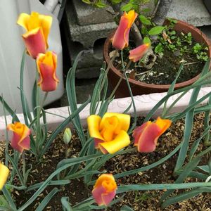 こんにちは😊🎶🌷 今日は雲ひとつない快晴でした チュウリップの大きいのと小さいの とても可愛いく💕咲きました。