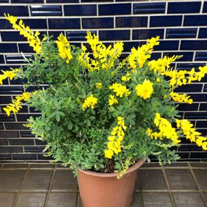 おはようございます😊🎶 ホワイトデーにもらった ミニエニシダまた沢山咲き誇って います