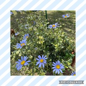 斑入りのブルーデージー💜💜💜 一度は諦め☆たのですが 無事になんとか冬越しして たくさんのお花💠が咲いてくれました うれしいです😂