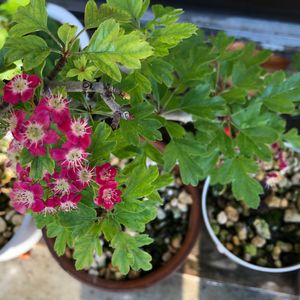 おはようございます😊🌸🎶 朝、散歩していて見つけました 花友さんの前で「サンザシ」です 一週間ほど前にどうしても欲しくて 買われたそうです