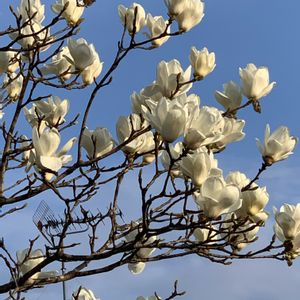 朝の散歩にて。 白木蓮ですよね⁉︎ コブシと良く似ていますが 萼が有るのと、開花中の葉っぱが無いのと、肉厚な花弁...。 白木蓮だと思うんだけどなぁ。 香りを嗅ぎたかったけど、ちょっと高さがあって無理でした。