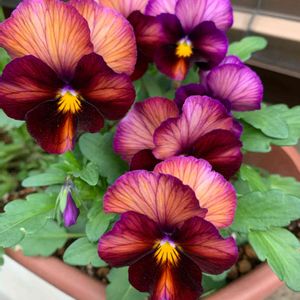 種蒔き組のビオラ❤️ お花が大きいけどビオラだよね(๑˃̵ᴗ˂̵) ヌーヴェルヴァーグに似てる❣️ 混合? 分からないけど可愛い❤️ 株育成にはお花は摘み取るんですけど… あまりにも綺麗なので✨✨