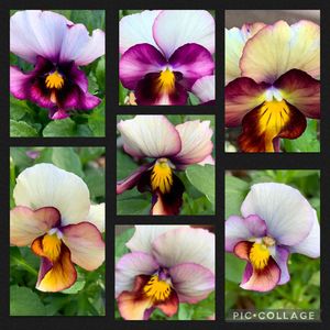 この前、お迎えした パンジー、ビオラの寄せ植えの一角です。 「わたしも撮ってぇ。」 「わたしも〜。」 「ちょっと、押さないでよぉ〜。」 みたいな⁉︎ 笑😅