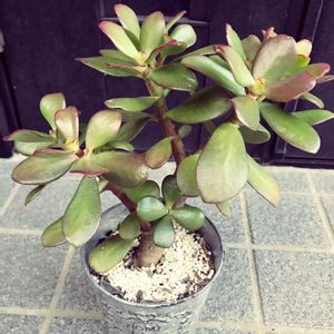 金の成る木、初のクローズアップです😃 いつから家に居るかなぁーこの子🤔 何か最近新芽が沢山でてきて葉先もほんのり色付いて、とっても可愛くなってきました💓 お花咲いて欲しいけど、調べたら、お花咲かす為には夏場は水を断たなければならなかったみたいで😅沢山あげちゃってたしなぁ〜💧お花は無理かしらね😓