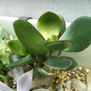 クラッスラ🌱 葉っぱ一枚から4年とちょっとでこの大きさです😆 水やりはあまりせずに 雨のかかるベランダに置いてますが、枯れる事なく夏の暑さにも平気でした🤩 根詰まりしていたので植え替えしたのですが、中々鉢から抜けず 周り一周を金属のヘラでザリザリカットして、やっと抜けました。😆 新しい鉢で足伸ばしてねー