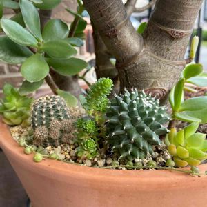 金の成る木の足元 セダムは少し枯らした所がありますが、サボさんは大きくなり赤ちゃんも見れました😊