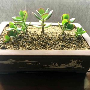 金の成る木を盆栽鉢に植え替えた( ³з³)