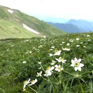 ハクサンイチゲ(白山一花、白山一華) キンポウゲ科 山頂一面に咲いてました〜✨✨ 草丈20〜50cm 花弁のように見えるのは萼片 ⛰️平標山 6月下旬 暫くいろいろと忙しくGS離れてましたが、これから ここ数週間で会えた高山植物を少しずつUPしていきます⤴️😊