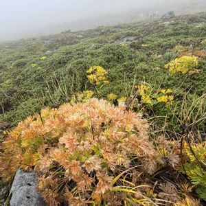 白山柴胡/ハクサンサイコ イブキジャコウソウの群生の中に黄色の可愛い花🌼 初見 ②伊吹麝香草/イブキジャコウソウ 白山繋がりで ③白山一華/ハクサンイチゲ + 稚児車/チングルマ ④白山風露/ハクサンフウロ