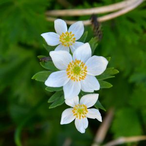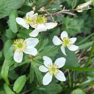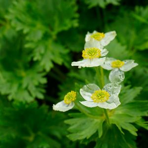 鳥海山 白山一華 キンポウゲ科 イチリンソウ属 6月〜8月 高山の雪解け直後に咲き始める花。日本固有種。 一つの株に一つだけ花をつけることからイチゲ(一花)と呼ばれている。ただし、イチリンソウ属の植物は必ずしも一株に一輪の花をつける訳ではなく、ハクサンイチゲも一つの株に複数の花をつける。茎の途中にえりまきのような柄のない葉がつき,そこから数本の花柄が伸びて花をつける。