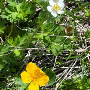 高山植物はやっぱいいなぁ😍🎵 大きくて艶やかでパッと👀に入ってきます。 代表的高山植物の「ハクサンイチゲ」と「シナノキンバイ」の揃い踏み💕