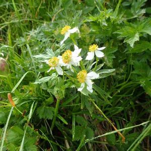 ハクサンイチゲ 白山一花 キンポウゲ科 草丈 20〜50cm 花期 6〜7月 花径 2〜2.5cm 写真では1個しか花が着いてないけ2〜6個 散形状に着く事が多い 花には花弁がなく白色の萼片が花びらに見える。 多年草 2021.6.24