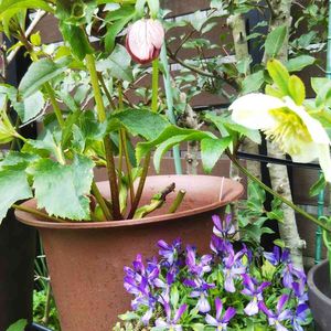 こぼれ種からの クリスマスローズと ビオラ花糸さん 仲良く 記念撮影です。