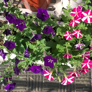 八重のペチュニアと八重のカリブラコア 暑い💦けど良く咲いてくれてます❣️