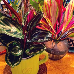 今日は、カラテアさんと🌿✨ニュードリーミーさん🌿✨2つとも筆で描いたような葉っぱの柄が素敵です✨相性も良さそうですね🖼 先日、越谷にあるシマムラ園芸という所に行ってきました🌈GSを見ていたら、ようやく行けたシマムラ園芸というコメントを見かけまして🤭ん〜どこでしょうと見ていたら😊あれっなんか車で🚗行けそうな所と思い🌱思い切って行ってみました😋当たりです🎊 安いし可愛い鉢も発見しました💁♂️カラテアさんの鉢、マグカップになってるんです⭕️可愛いですよね😃即、購入しました😊