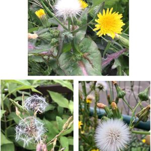 先週木曜日に投稿した、、、 名前は分からないけど、 白いポンポンが可愛い植物💚 ポンポンの前の花はどんなか知りたくて、空き地からもらって観察してみました🧐 蕾がたくさんついているのを選んだつもりでしたが、、、それは蕾ではなく、もう開花した状態みたい😆💕 多分お花は左上🌼 少し蕊が出ている感じ。ここまででこれ以上開かないようです。 右上右下の写真に見られる可愛い形のものはこれからすぐに綿毛になってしまいます。 左下が今日の様子。 だいぶ“ポンポン“が増えたので、玄関外の新聞受けに。 “ポンポン“前の形が可愛いです😍 お名前わかりますか? 💚💚💚 アレチノギクの分かりました! 調べてみて、似たものが多いことと、アレチとかノボロとか残念な名前があることもわかりました。