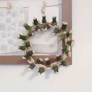 今日は、ずっと作ってみたかったタンポポの綿毛リースを作りました。 グルーガンで、綿毛をリースに接着して毛が開いたらケープ(ヘアスプレー)で固めて固定をしたら完成します。 とても、簡単に作ることが出来るそうです。 明日には、綿毛が開くのかな?! どうなるのか楽しみです😊
