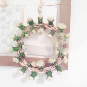 綿毛リースを作ってから17時間経ちました!! かなりの蕾が開き綿毛がフワフワしています。 残りの蕾も早く開かないかな😊